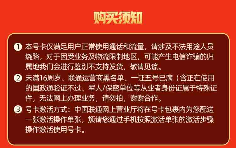 8、用户在后续激活使用过程中,如当月出现欠费停机等情况,需要缴清历史欠费,才可继续使用。